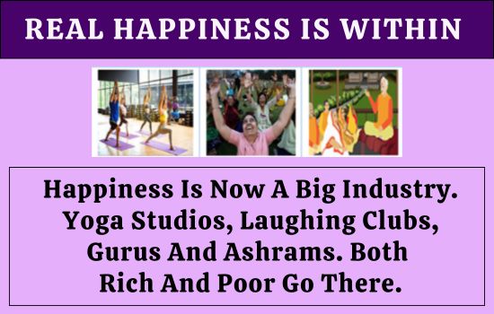 Lot of people have money now-a-days but still seem to be in search of happiness. And that is why you have an industry of Yoga studios, laughing clubs, Gurus and Ashrams trying to help towards that goal.