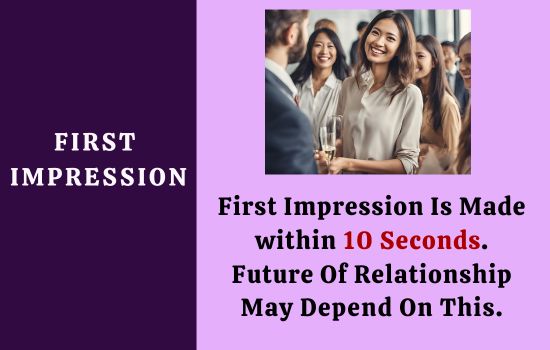 Research says that a first impression is recorded by the other person in about 10 seconds. First impression can make or break your future relationship with that person.